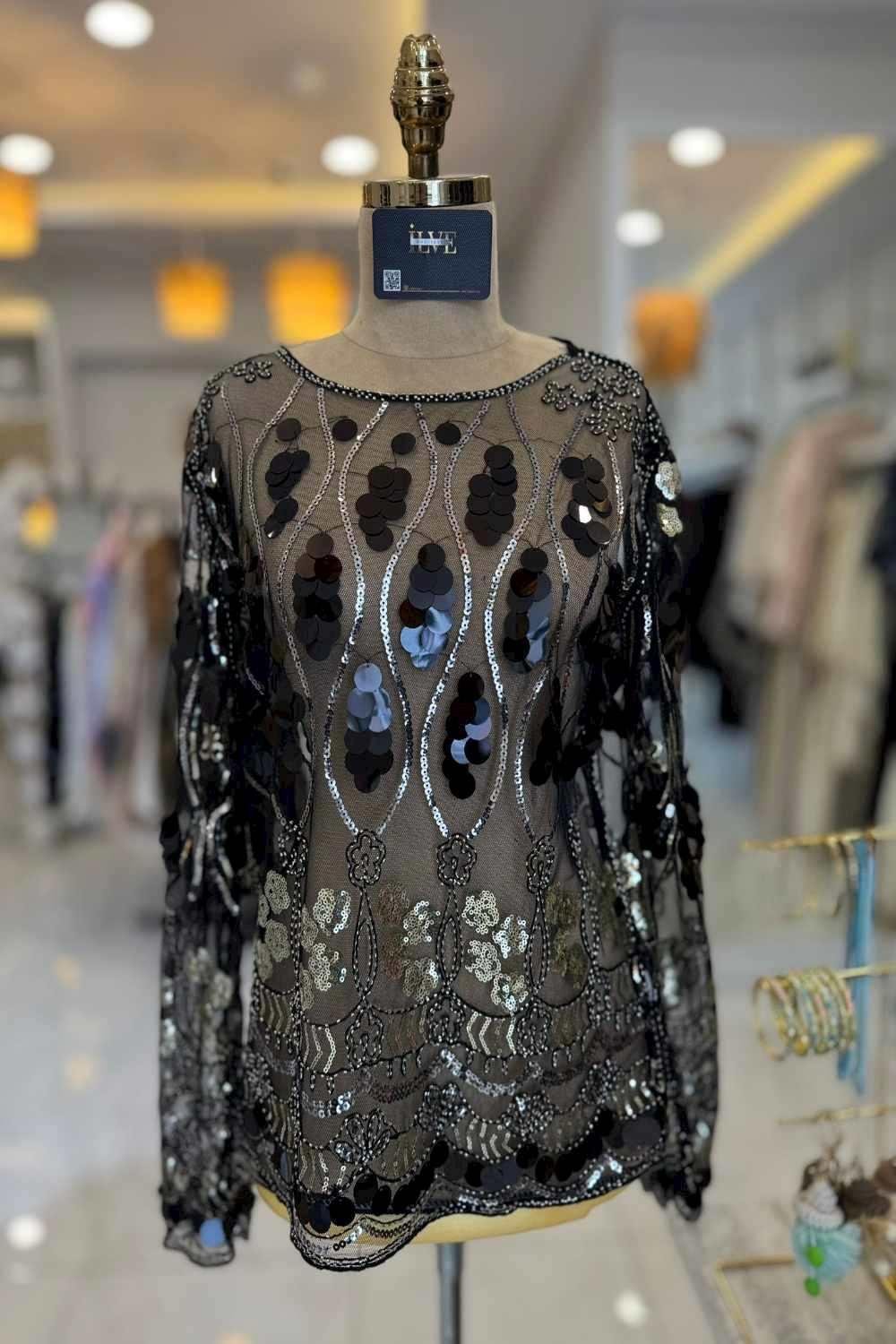 İthal Siyah Transparan Bluz