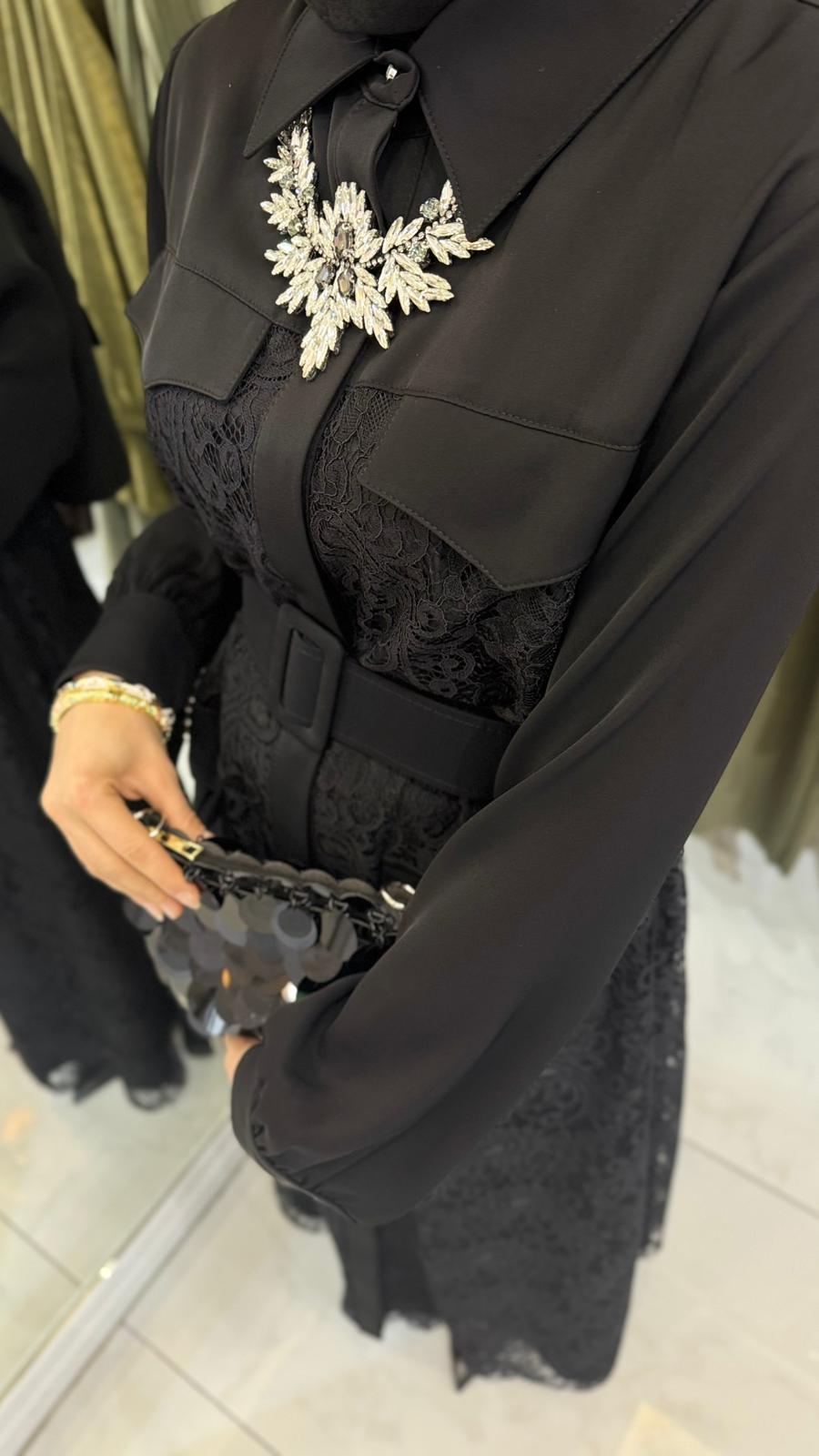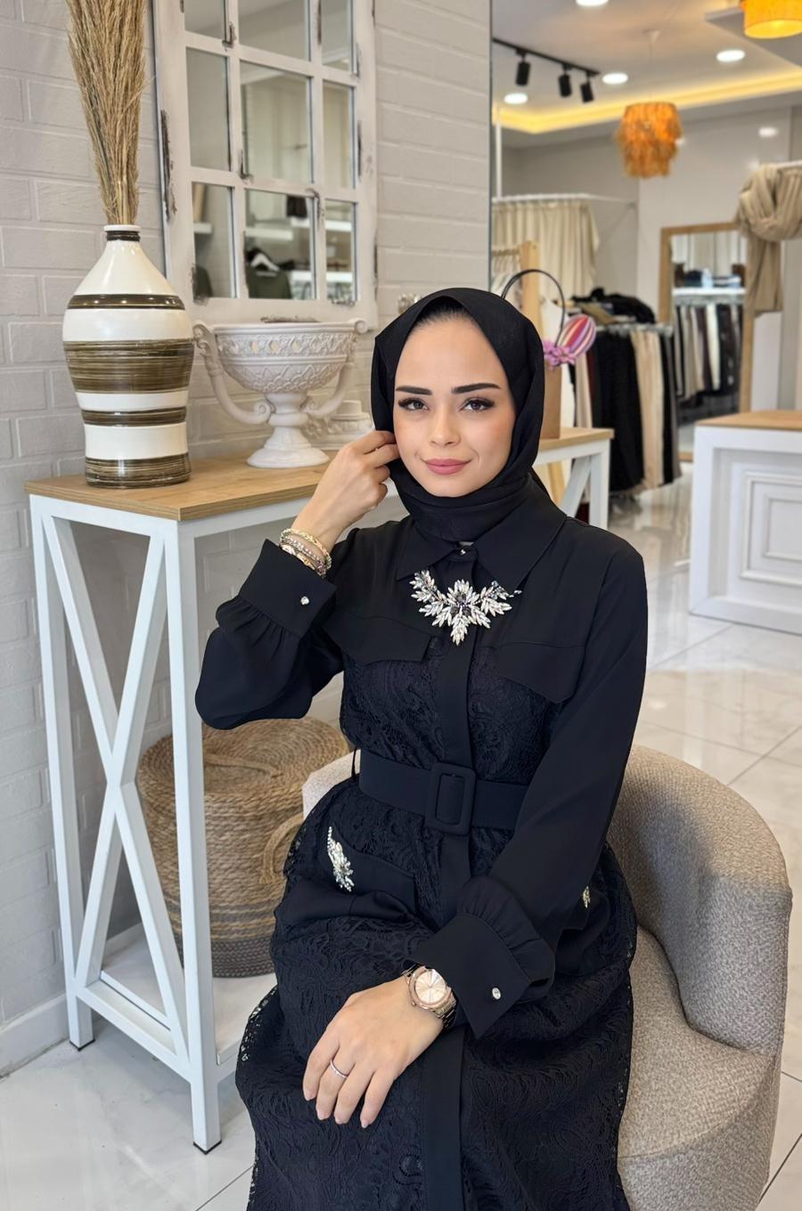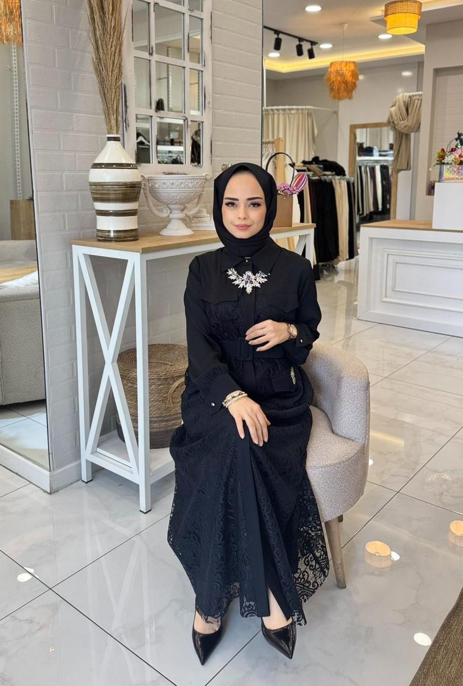 My312 Cepleri Taşlı Dantel Elbise (ILVE-5711)
