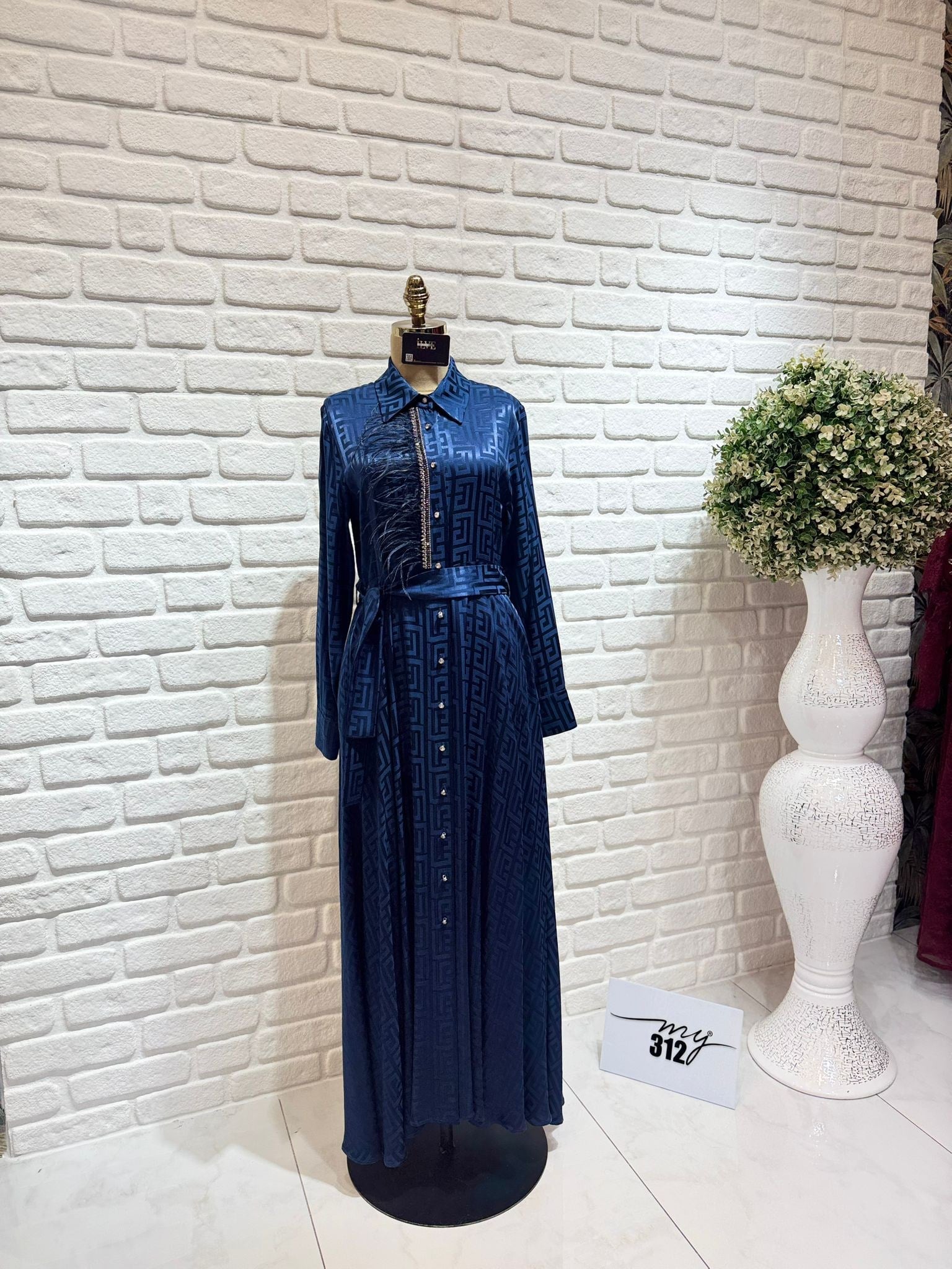 My312 Önü Taşlı Jakar Elbise (ILVE-5703)